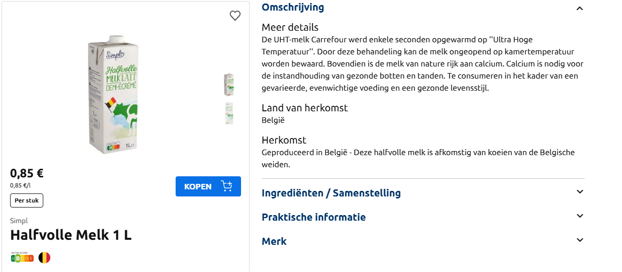 Daarom gingen we op onderzoek en vergeleken we de prijzen van halfvolle melk (1 liter) bij verschillende Belgische supermarkten.